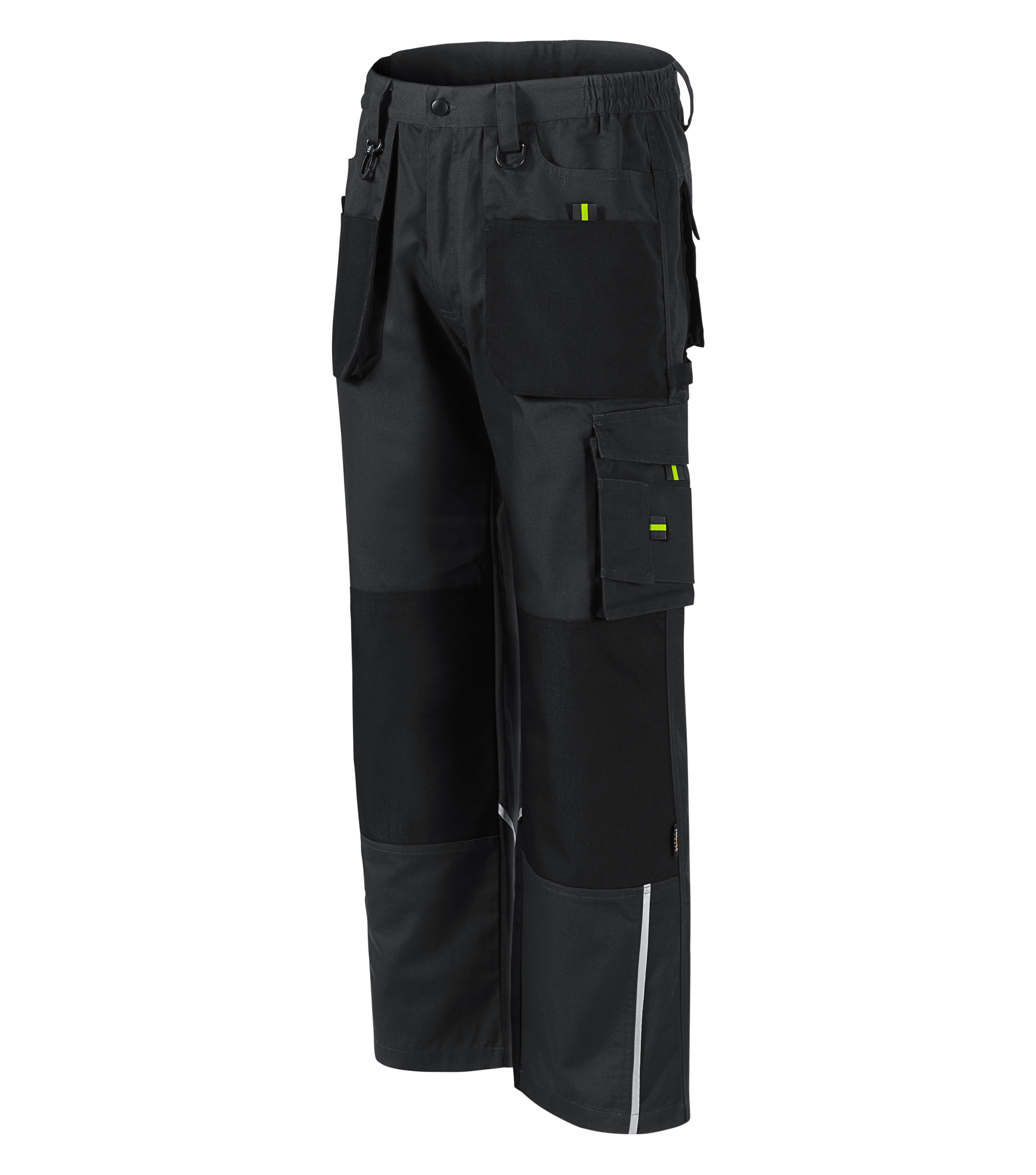 <p>Spodnie robocze.</p><ul><li><p>gumka wszyta w pasie na bokach</p></li><li><p>10 wielofunkcyjnych kieszeni</p></li><li><p>wzmocniony materiał w części kolanowej</p></li><li><p>plastikowa zawieszka w kształcie litery D i wieszaczek na klucze i identyfikator</p></li><li><p>pętla na młotek</p></li><li><p>podwójne szwy dla większej trwałości</p></li><li><p>wysoce odporny materiał w kolorze 01</p></li><li><p>elementy refleksyjne</p></li><li><p><em>Splot płócienny, 65 % poliester, 35 % bawełna, 270 g/m²; 100 % poliamid, 210 g/m²</em></p></li></ul>
